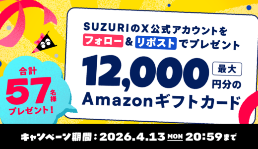 オリジナルTシャツが最短即日発送!SUZURIの「特急便」がはじまりました 2026年3月31日 【予告】SUZURIクリエイター100万人感謝セールを開催します! 2026年3月19日 輝く!【100万人記念SUZURI賞】発表 2026年3月19日 一部アイテムの送料・価格改定および取り扱い終了のお知らせ 2026年3月11日 あなたのお買い物が、小さな命を救う一杯に。SUZURI 犬猫生活 チャリティコラボ 2026年3月10日 【結果発表✨】武蔵小杉・新丸子のまちの魅力を“文字”で表現するタイポグラフィックデザインコンテスト 2026年3月9日 「EIKO!GO!!」特別アイテムが追加されました ✨🧥 2026年3月4日 【終了】「新生活応援セール」を開催します🌸 2026年2月27日 【終了】「ニンニンSALE」を開催します🎉 2026年2月12日 最大45%OFF!「卒業記念 マグ・タンブラーセール」を開催します🎉 2026年2月9日 もっと見る